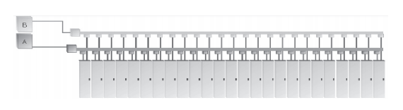 在每列机柜顶部铺设2条与机柜等长的轨道式小母线。来自UPS输出的A路与B路。各IT机柜配电通过其安装在其顶部的A/B段母线的插接箱分别引电至机柜内的A/B路PDU完成机柜双路取电。