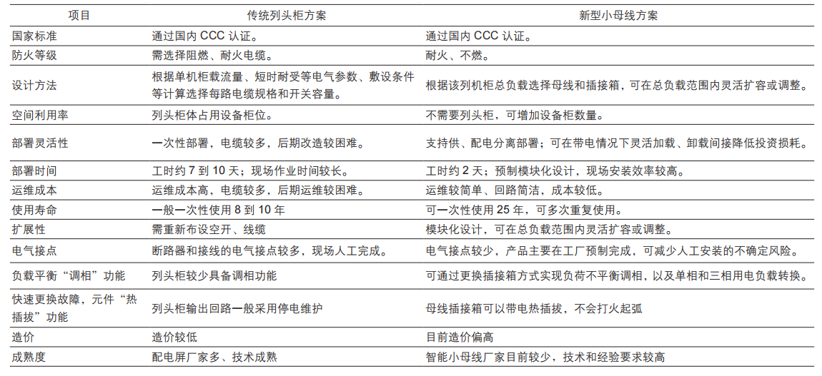 本文对比了传统列头柜方式和智能小母线方式的优缺点,并结合典型数据*心机房案例,定量分析了两种模式下可安装机架数量、建设成本及经济效益等,得出了有益的结论。