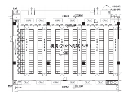 机房共规划安装11列设备,组成6个封闭冷通道,不设列头柜,共可安装216个IT机柜,如图4所示。